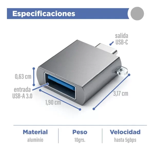 El adaptador Satechi USB-C a USB-A Card es la herramienta ideal para expandir la conectividad de tus dispositivos modernos. Su diseño compacto y elegante en aluminio permite transferencias rápidas y seguras, con una velocidad de hasta 5Gbps.