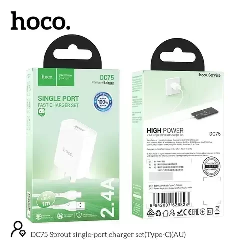 La Fuente de Pared Hoco DC75 ofrece una carga rápida y segura de hasta 12W, perfecta para mantener tus dispositivos siempre listos. Su tamaño compacto y diseño resistente lo convierten en un cargador práctico para uso diario en casa, oficina o viajes.