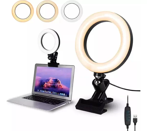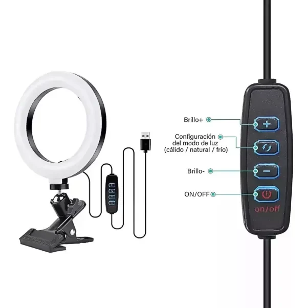 El Aro de Luz LED de 16 cm con clip de montaje es la solución práctica y compacta para tus videollamadas, transmisiones en vivo, maquillaje y creación de contenido. Con 3 tonos de luz y 10 niveles de brillo, se adapta a cualquier necesidad de iluminación.