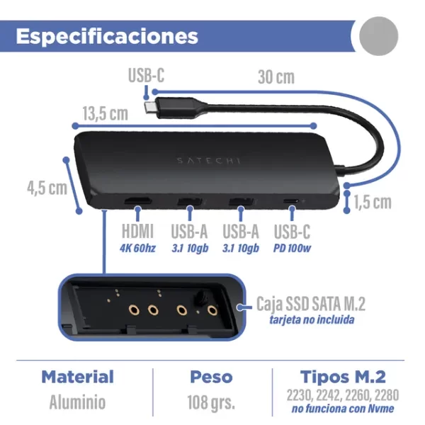 HUB USB-C A SSD SATA M.2 HDMI 4K 60Hz – SATECHI